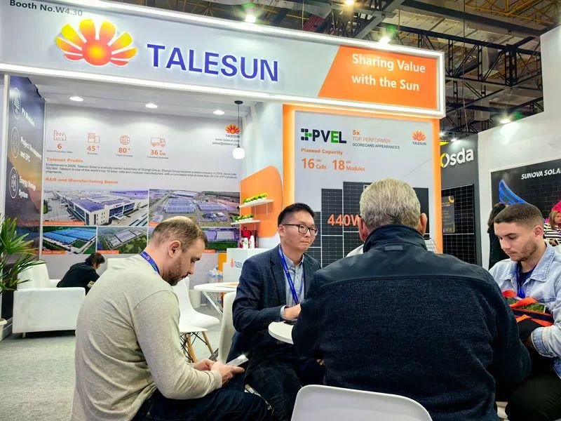 在展會上,騰暉光伏不僅重點展示了590W和620W雙面雙玻N型組件還展示了公司在大型地面電站、分布式光伏和農(nóng)業(yè)光伏等領(lǐng)域的綜合解決方案和成功案例。這些方案涵蓋了從項目規(guī)劃、設(shè)計、施工到運(yùn)維的全生命周期服務(wù),為南美地區(qū)的客戶提供了一站式的光伏解決方案。期間,騰暉光伏海外營銷團(tuán)隊還與南美本土企業(yè)和研究機(jī)構(gòu)就光伏技術(shù)在該地區(qū)的應(yīng)用前景與未來合作展開了深入探討。
