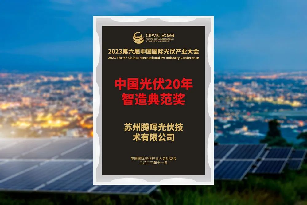 2023年11月13-16日,2023第六屆中國(guó)國(guó)際光伏產(chǎn)業(yè)大會(huì)在四川成都隆重舉行。相關(guān)政府領(lǐng)導(dǎo)、全球光伏行業(yè)頂尖專(zhuān)家學(xué)者、領(lǐng)軍企業(yè)家、光伏企業(yè)代表齊聚一堂,共同探討光伏行業(yè)發(fā)展趨勢(shì),推動(dòng)綠色低碳可持續(xù)發(fā)展。騰暉光伏應(yīng)邀出席了本次盛會(huì),并榮獲“中國(guó)光伏20年·智造典范獎(jiǎng)”。