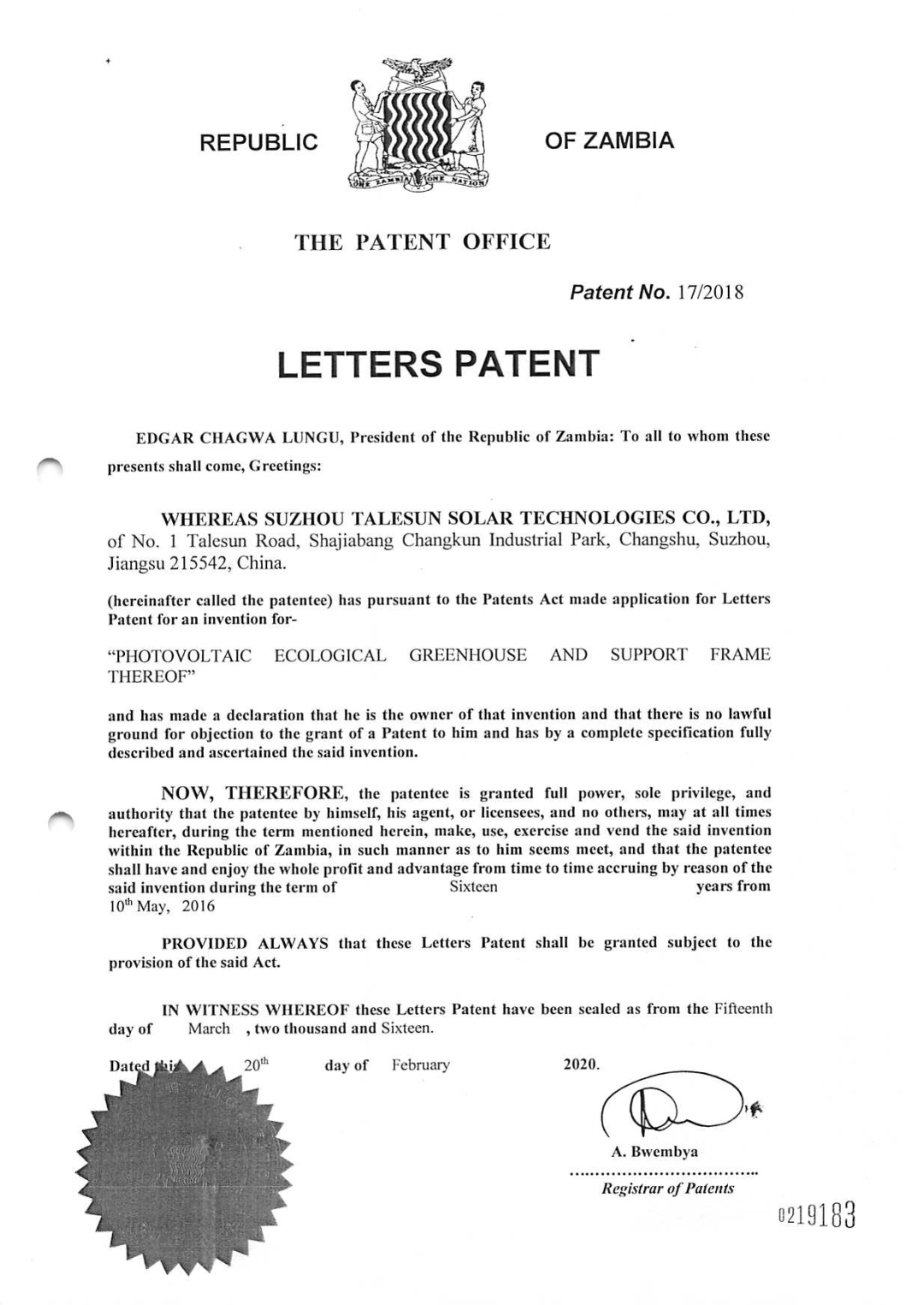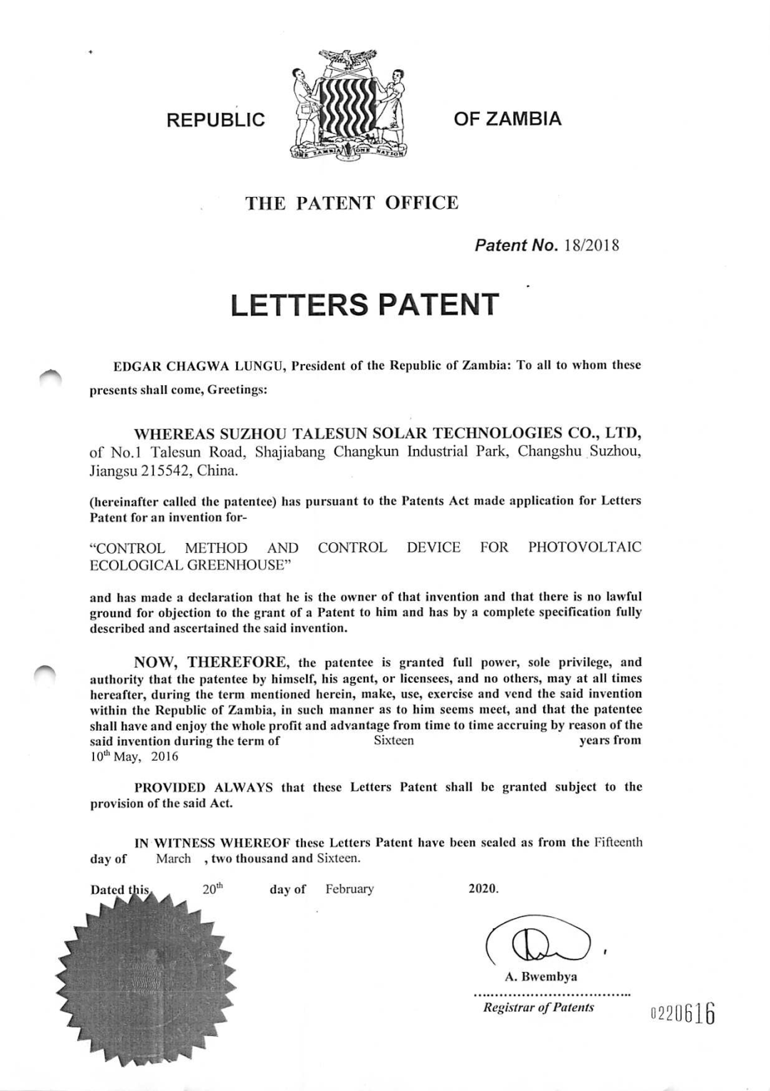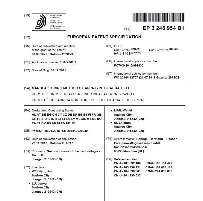 騰暉光伏海外獲四項(xiàng)發(fā)明專利