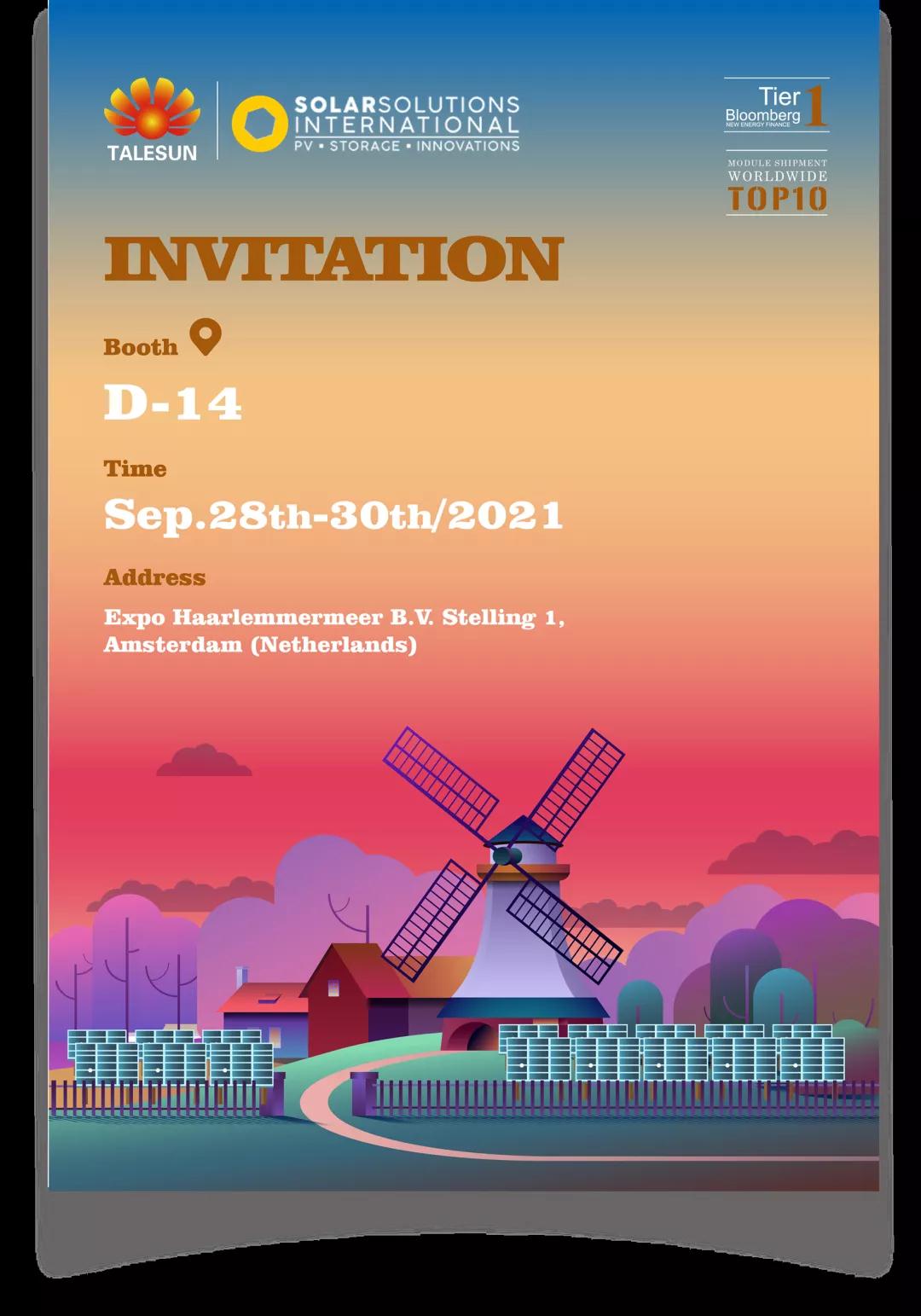 9月28-30日,2021年Solar Solutions International 展即將在荷蘭阿姆斯特丹市哈勒默梅爾會展中心隆重舉行,騰暉光伏將攜系列高效光伏組件亮相這一平臺。該展會作為西北歐最大的太陽能貿(mào)易展會之一,已經(jīng)成為荷比盧經(jīng)濟(jì)聯(lián)盟內(nèi)光伏產(chǎn)業(yè)的著名品牌盛會,眾多光伏生產(chǎn)商、安裝商、服務(wù)商以及終端用戶將齊聚一堂。