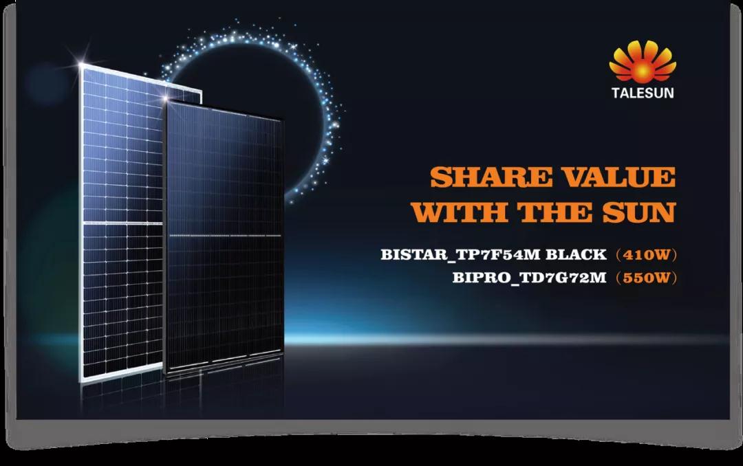 本屆展會上,騰暉光伏針對當(dāng)?shù)厥袌鲂枨笳钩鰞煽罟夥M件產(chǎn)品,包括410W 的BISTAR系列黑組件和550W的BIPRO系列雙玻組件。兩款產(chǎn)品都采用了182mm大尺寸半片電池片和多主柵設(shè)計,有效提升轉(zhuǎn)換效率和降低能源輸出損耗,適用于多種應(yīng)用場景。