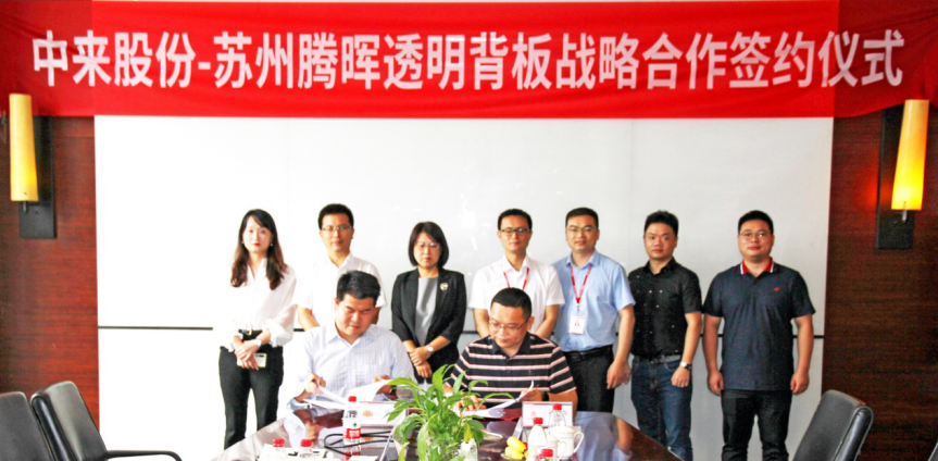 蘇州騰暉光伏總裁盛昊與中來(lái)新材總經(jīng)理程旭東簽署透明背板戰(zhàn)略合作協(xié)議